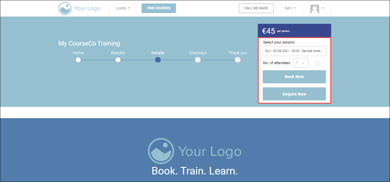 The booking will be confirmed. A paid transaction will be processed on CourseCo. Your payment gateway will receive your payment and transfer your linked bank account. A confirmation email will be sent to the lead booker. Booking details will also be sent to delegates that have been booked on to the course.