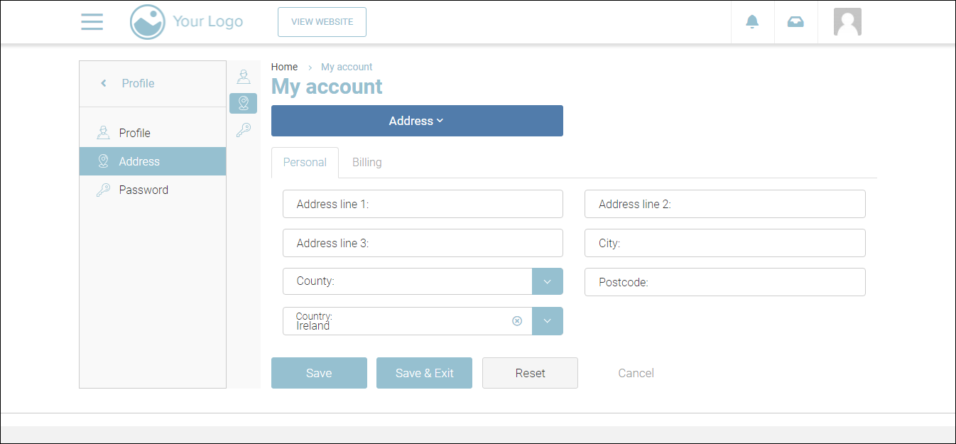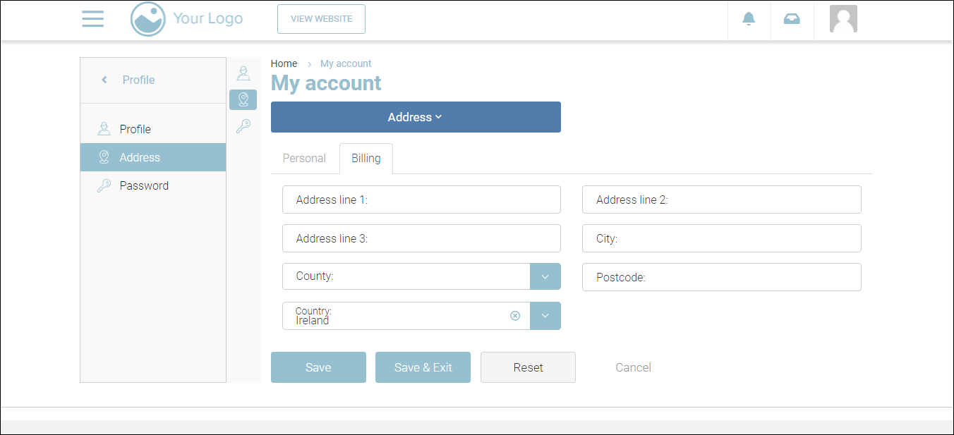 On the Address page, you can update your personal address and billing address.